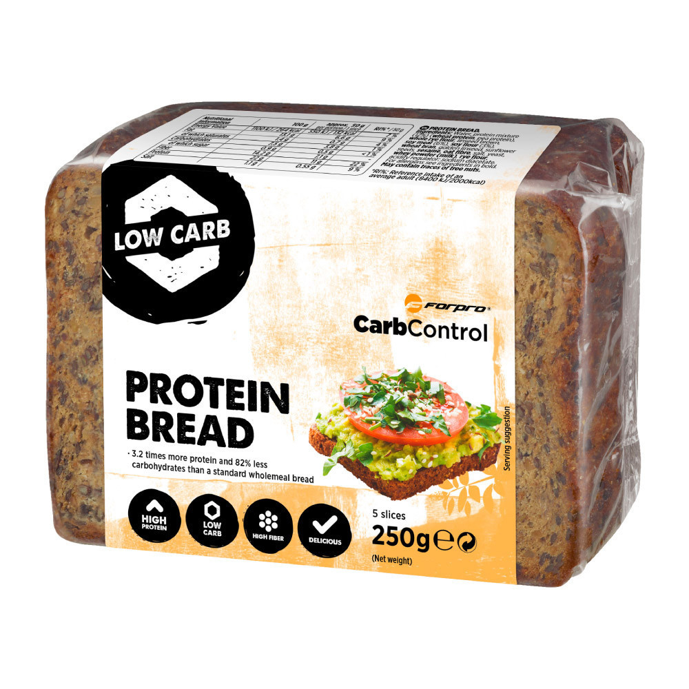 Mintenhol azt haljuk, hogy "de úgy kell a boldogság, mint egy falat kenyér". A Forpro Protein Bread szeletei kivülről ropogósabbak belülről lágyak, szezámmag, lenmag és napraforgómag hozzáadásával. Ezt a kenyeret magasabb fehérjetartalmú étrendre készítették, de minden célra megfelel. 82%-kal kevesebb szénhidrátot, kevesebb cukrot tartalmaz, mint a szokásos kenyér, így segít elérni fitnesz céljaidat.