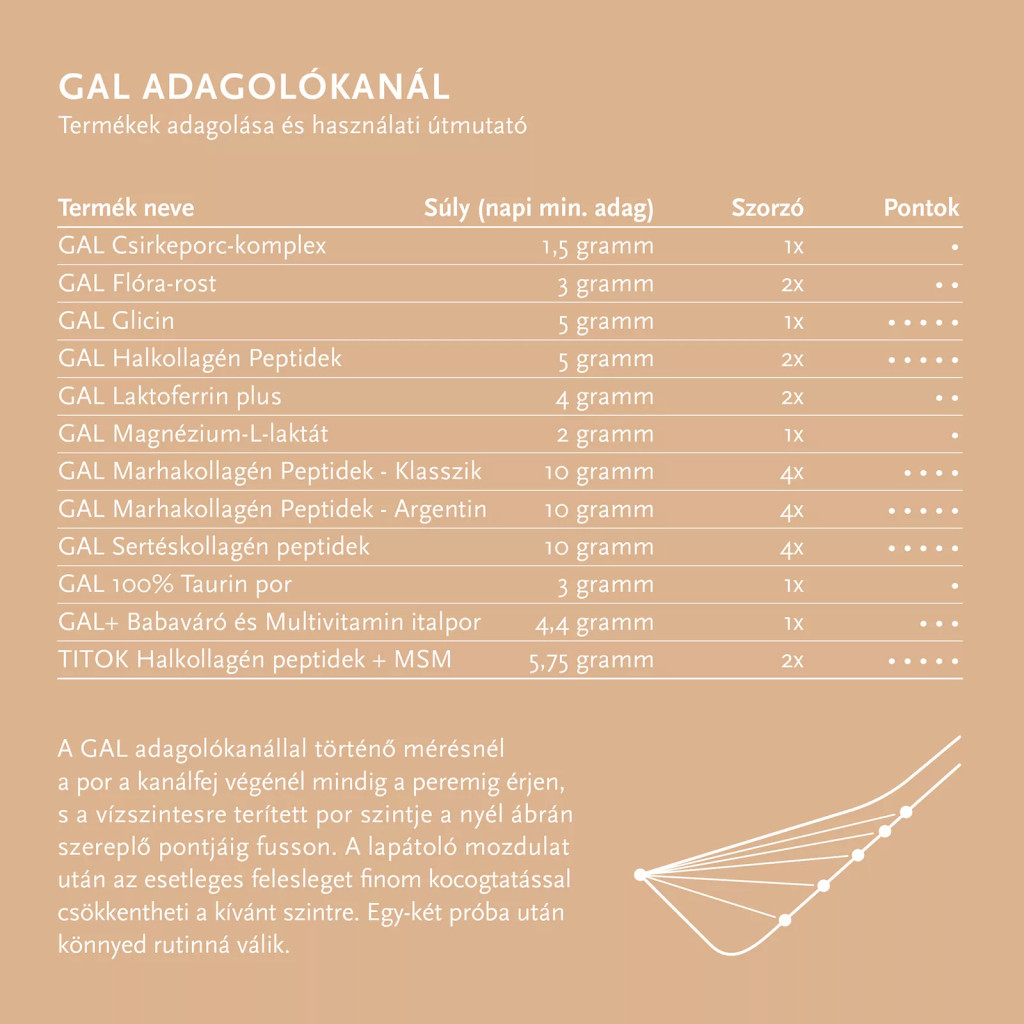 Adagolás: Napi 10g (1 púpozott evőkanál) fogyasztása javasolt napi 1 vagy 2 alkalommal. Íze nincsen, de enyhe szaga miatt érdemes narancslébe, kakaóba vagy pl. tejszínes-vaníliás italba keveri, melyek remekül elfedik azt.