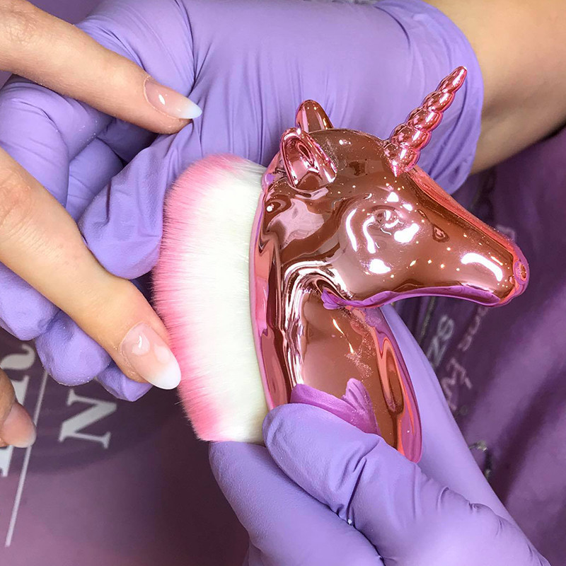 Vendégeid is megirigyelhetik ezt a pihe-puha unikornis formájú portalanító kefét, ami nemcsak szalonmunkád során lehet remek társad, de a napodat is feldobja!
